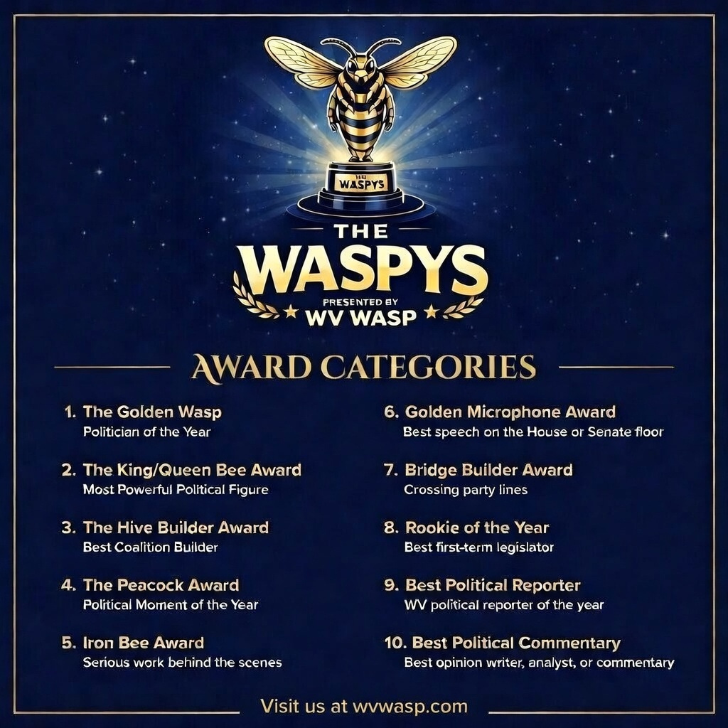 From the “Politician of the Year” to “Rookie of the Year”—the WASPYS will highlight excellence, accountability, and that unbreakable West Virginian spirit. Created by the passionate team at @wvwasp (West Virginia WASP), this inaugural program aims to bridge the gap between the public and our elected officials, and showing a fun side of politics in West Virginia.
