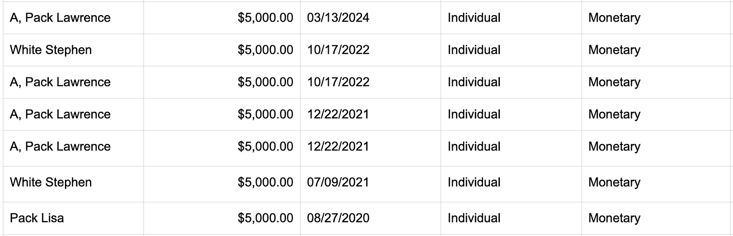 Third, campaign finance records show Pack family members as the primary funders of a PAC that directed money into Republican primary races.