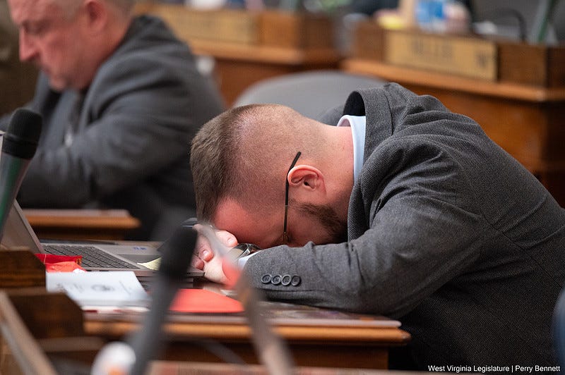 At 10:30 p.m., Del. David “Elliot” Pritt (R-Fayette) had tried to force an immediate vote. His motion failed 47-49. Sens. Grady and Weld physically walked onto the House floor during a recess to ask deputy speakers Matthew Rohrbach and Joe Ellington to please put the bill on the floor. That two sitting senators had to cross the building and personally lobby House leadership to schedule a vote on a bill the chamber had held since morning tells you everything you need to know about the priorities operating in that room.